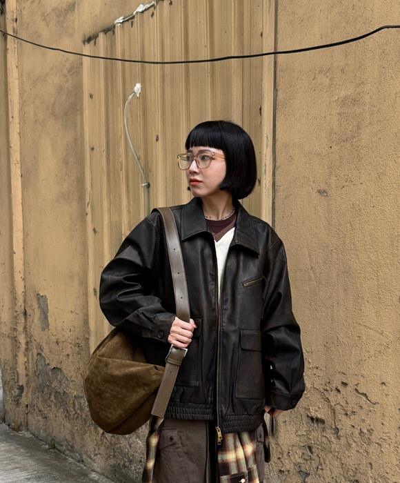 有點復古、頹廢又隨性慵懶的穿搭調性,靜靜走在城市的縫隙裡,讓皮革的味道混進秋天的風。